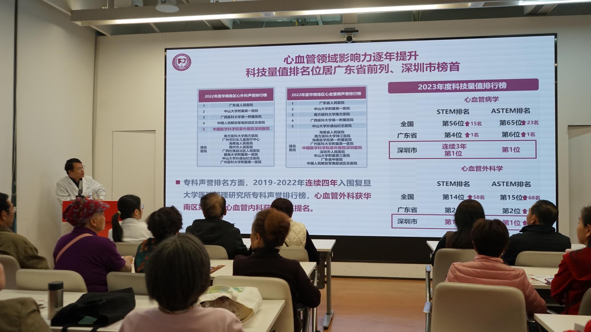 活动当天,阜外医院深圳医院的心脏病学专家为社区居民带来了一场生动的心脏健康科普讲座。专家们深入浅出地讲解了心血管疾病的预防知识,从常见的高血压、冠心病到心肌梗死、心力衰竭等心脏病症状,通过案例分享、数据分析和互动问答,帮助居民们了解心脏健康的重要性。专家们还结合日常生活中的健康习惯,为居民提供切实可行的保健建议。讲座内容深入浅出、通俗易懂,将复杂的医学知识转化为居民们能理解和运用的生活智慧。