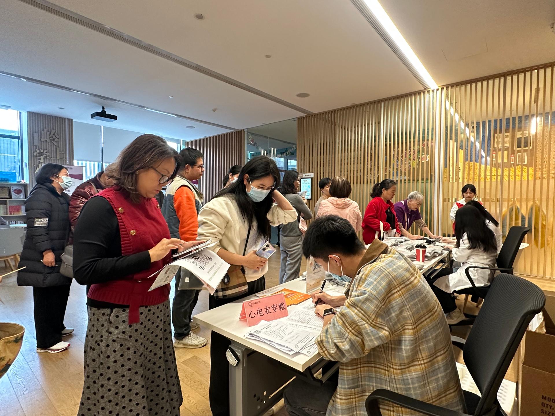 讲座结束后,活动进入了实际操作环节。阜外医院专家和善行医疗的工作人员分别为居民们做健康咨询及穿戴智能心电衣,开始进行24小时心脏健康监测。智能心电衣不仅能够实时监测心电图,还能通过智能算法分析心脏健康数据,帮助专家及时发现潜在的心脏健康问题。活动现场,专家们耐心地解答了居民们对于心脏健康的疑问,鼓励大家定期进行心脏检查,及时预防心血管疾病。